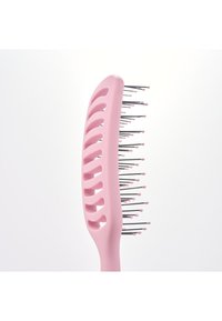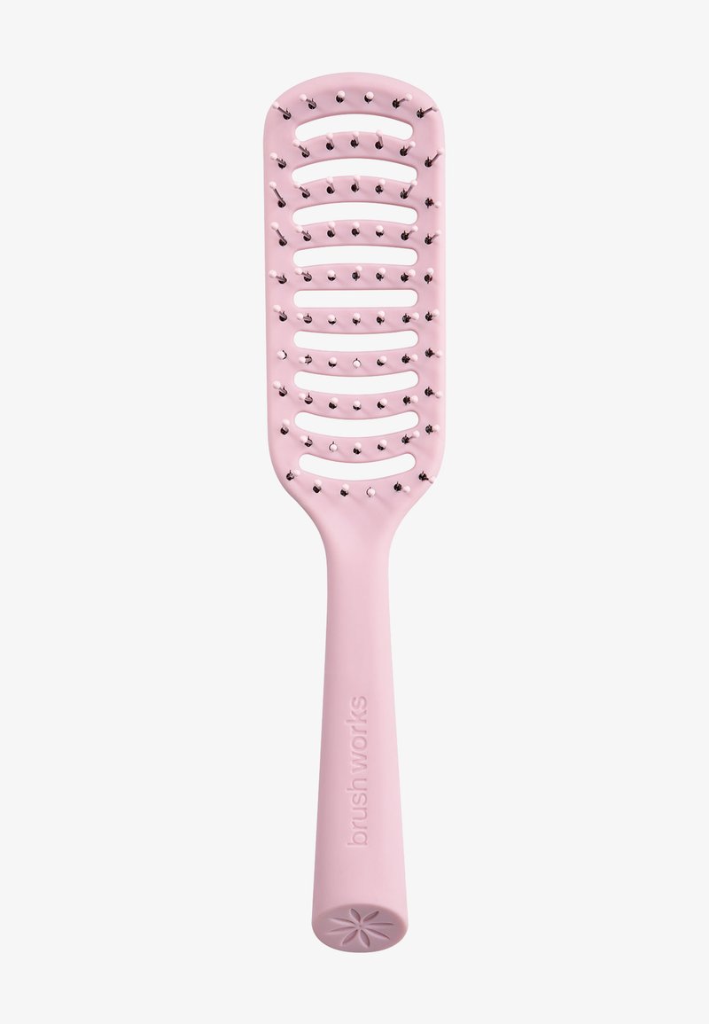For daglig redning, start ved hårets tupper og arbeid deg forsiktig opp mot røttene. For en glatt føntørking, del håret i seksjoner og bruk børsten til å guide hårtørkeren nedover, gli fra røtter til tupper for en jevn finish. For å skape løft ved røttene, plasser børsten nær hodebunnen ved røttene og vinkle den litt oppover. Mens du tørker, løft børsten forsiktig mens du retter hårtørkerens luftstrøm mot røttene, gjenta for hver seksjon for å bygge volum. Den slanke, ventilerte designen hjelper til med å fremskynde føntørking. Den er ideell for kortere stiler, inkludert fint og skjørt hår. De myke nylonpinnene redder forsiktig vått og tørt hår, og den lette designen gjør den egnet for reiser eller daglig bruk.