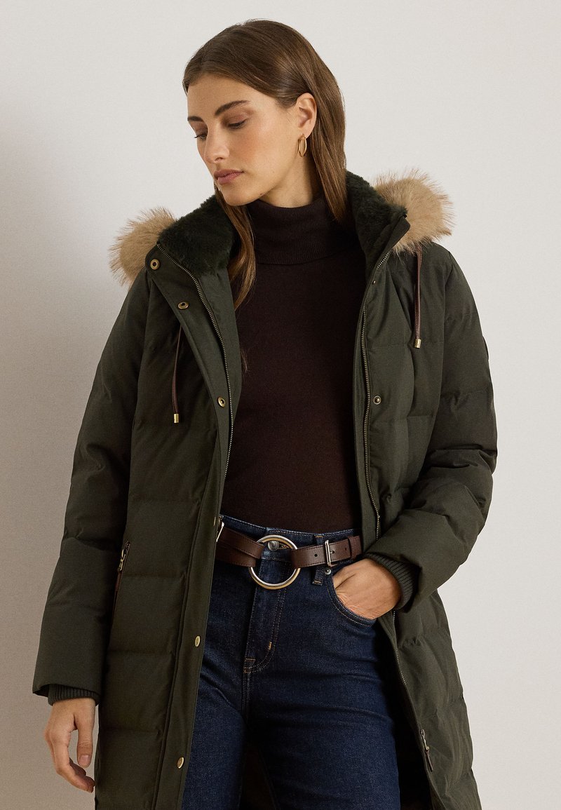 FAUX FUR TRIM HOODED DOWN COAT - Dunkåpe / -frakk - litchfield loden