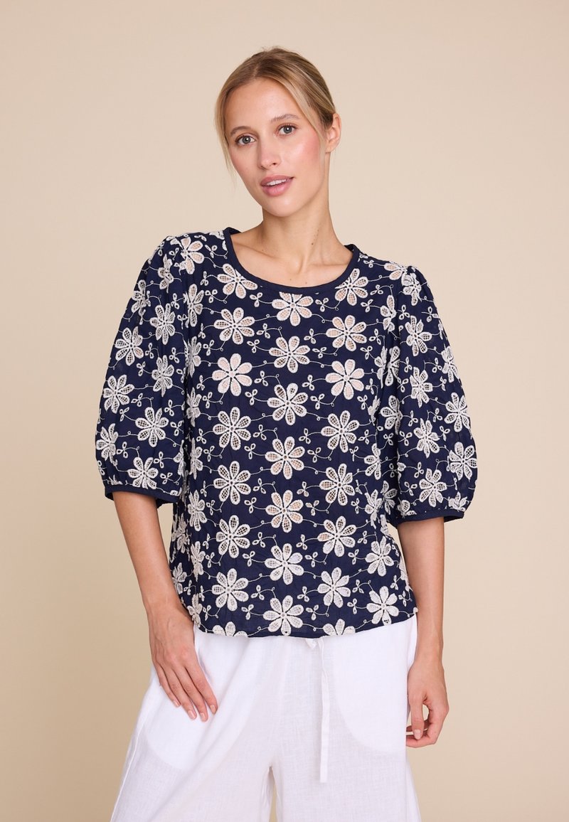 Isabel Lace er en av våre favorittbluser, nå tilbake i et vakkert blondedesign laget av 100% bomull. Den har en rund halsutskjæring med knapplukking bak og trekvartlange ermer med en subtil voluminøs form. Perfekt å style med jeans eller skjørt for et uanstrengt, elegant utseende.