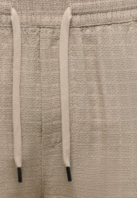 Lysebrune shorts i teksturert stoff med elastisk midjebånd og snor, designet for hverdagsbruk.