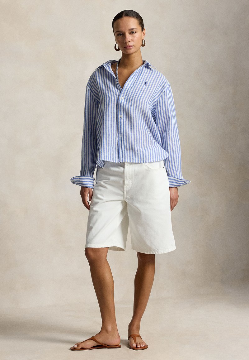 WIDE CROPPED GINGHAM LINEN SHIRT - Skjortebluse - gala blue/white