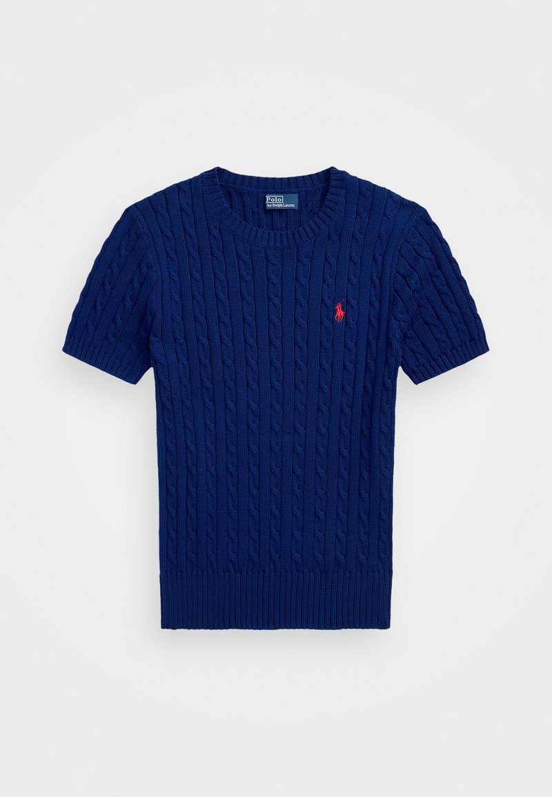 CABLE KNIT COTTON SHORT SLEEVE SWEATER - T-shirts med print - harrison blue