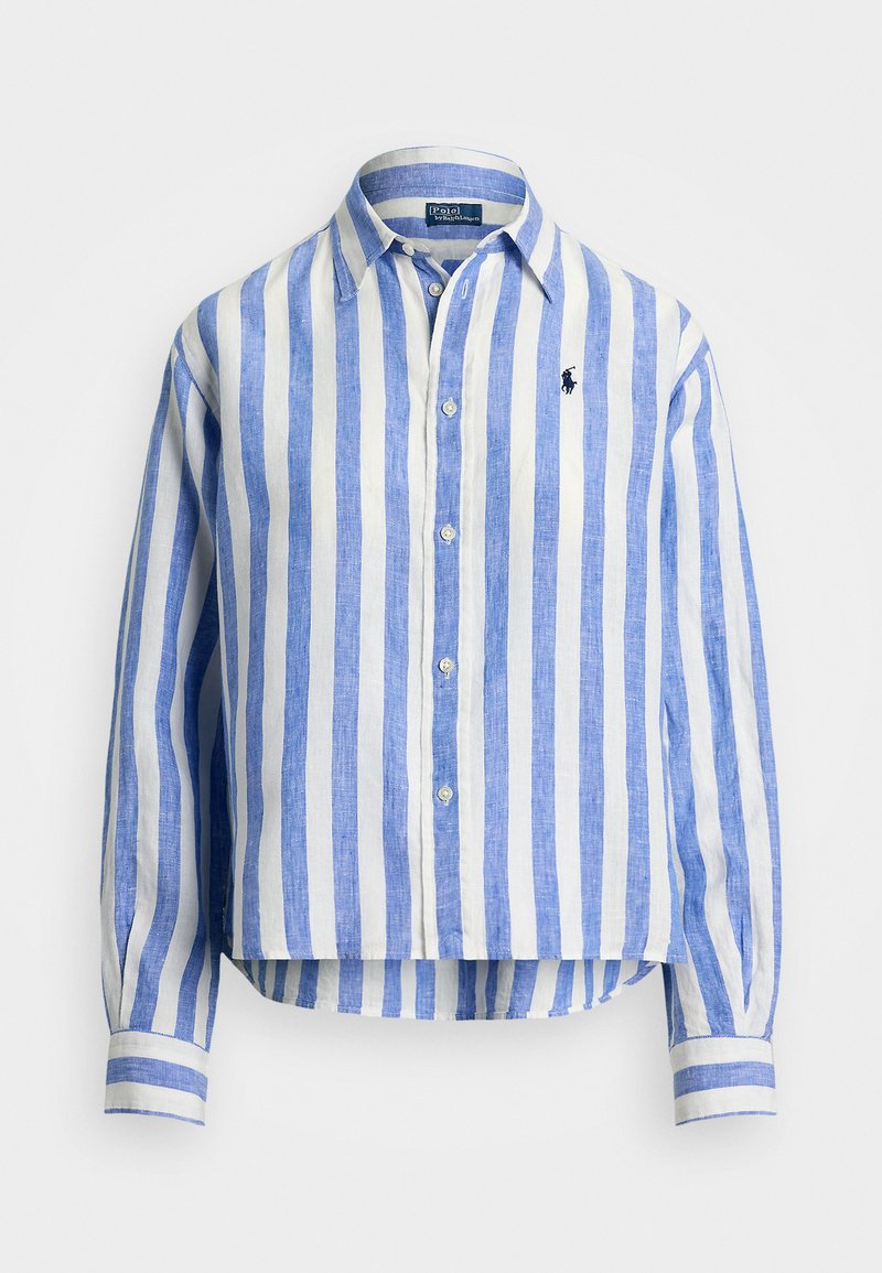 WIDE CROPPED GINGHAM LINEN SHIRT - Skjortebluse - blue/white