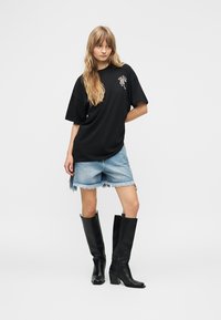 TEE SHIRT RELAX FIT UNI ROUND NECK WITH FRONT BACK PRINT - T-shirts med print - black